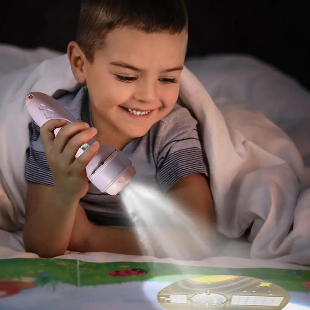 3.Child-Friendly Features: Spark your child’s imagination with the easy-to-operate and lightweight flashlight projector. With a gentle rotation of the cast, they can explore an array of projection patterns, and set off on a thrilling adventure of their own