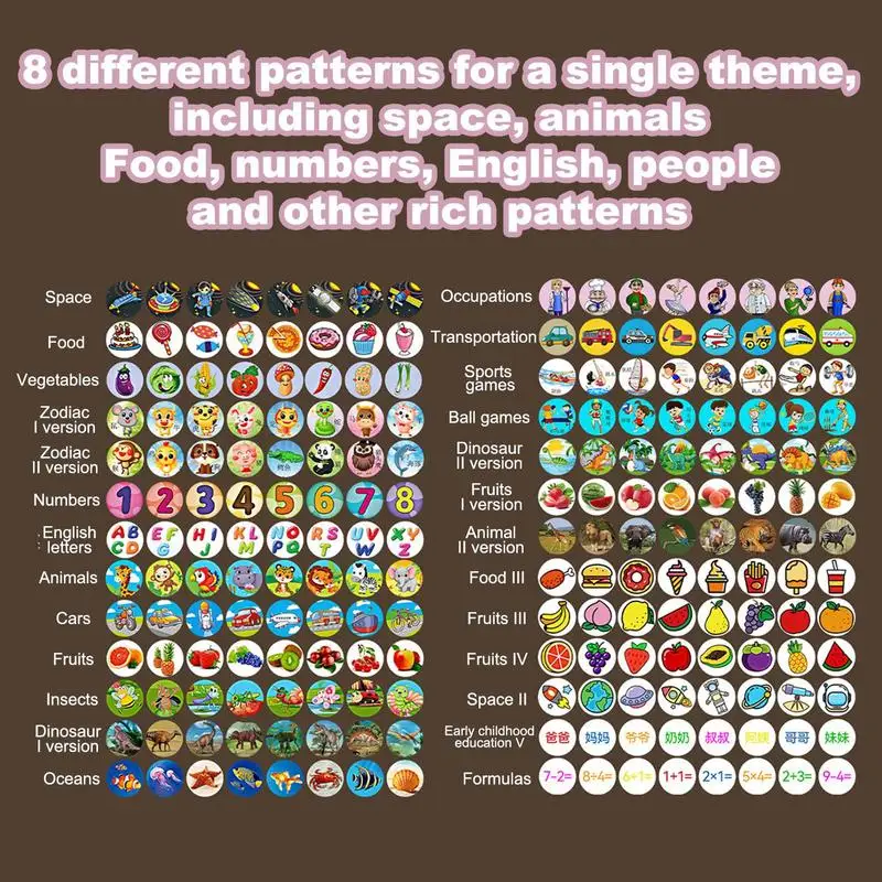 1.Pattern Variety: With 120 different cartoon patterns, each brightly coloured, children can choose their favourite by simply rotating it, stimulating their imagination and creativity with multiple vivid and interesting patterns