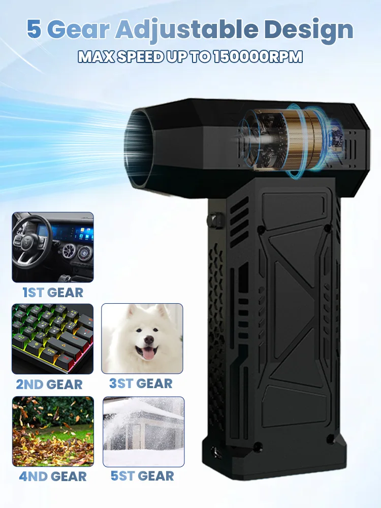 150,000RPM Electric Air Blower Handheld Turbo Jet Fan Brushless Motor Violent Blower Wind Speed 51m/s Rechargeable Air Duster