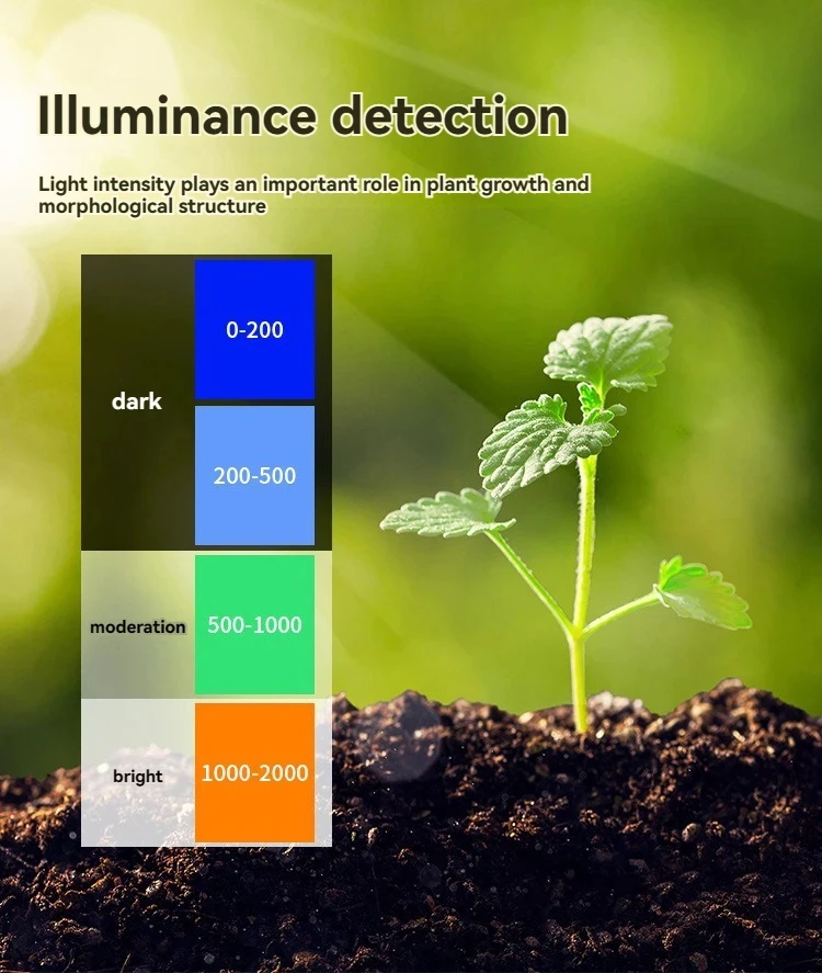 1.The product can measure the current light intensity (Low, LOW, LOW +, NOR, NOR, NOR +, hGH, HGH, HGH +) environment;
