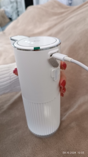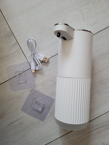 Отличный вспениватель! Есть 4 режима(на 1м выдает мало мыла и так по нарастающей, прикреплю фото в 1м и 4м режиме). В комплекте инструкция, шнур для зарядки, присоски для крепления на стену. Интуитивно понятно как пользоваться даже без инструкции, только раствор мыла нужно жидкий делать, иначе может не вспенивать, если слишком густое мыло.