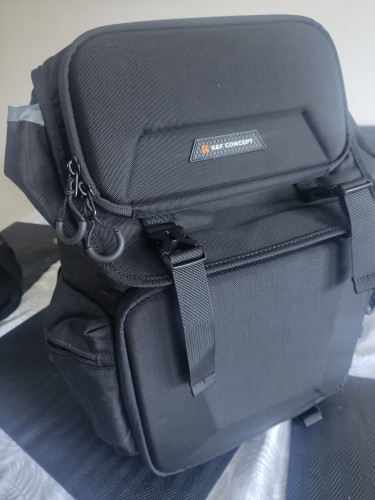 * The two upper and lower EVA compression moulded shells on the front panel are strong, durable and impact resistant. The upper and lower compartments are divided into bins, the lower bin is the camera bin, the upper bin is the item bin (clothes, drones, etc.), and the top bin is the battery, memory card, and data cable bin. The upper and lower warehouses can be separated or communicated with each other, and the lower warehouse equipment warehouse can be assembled by DIY.