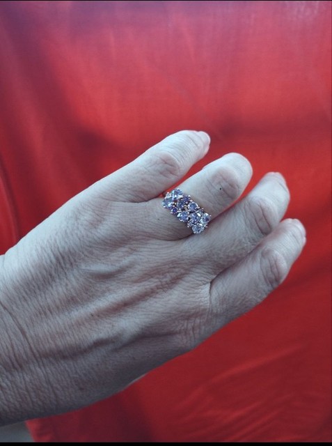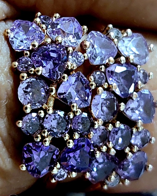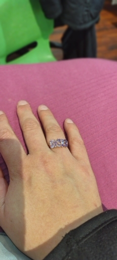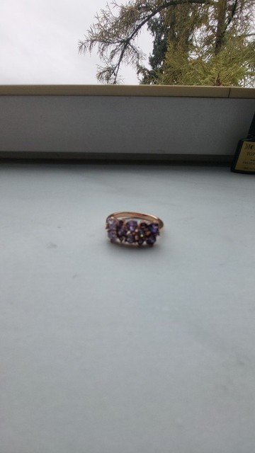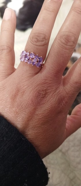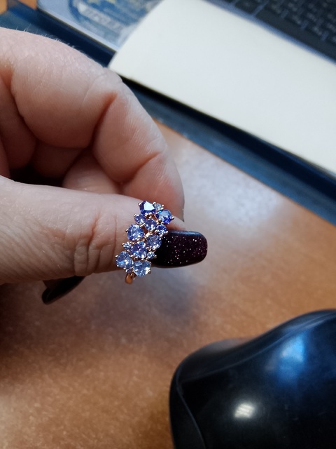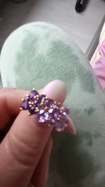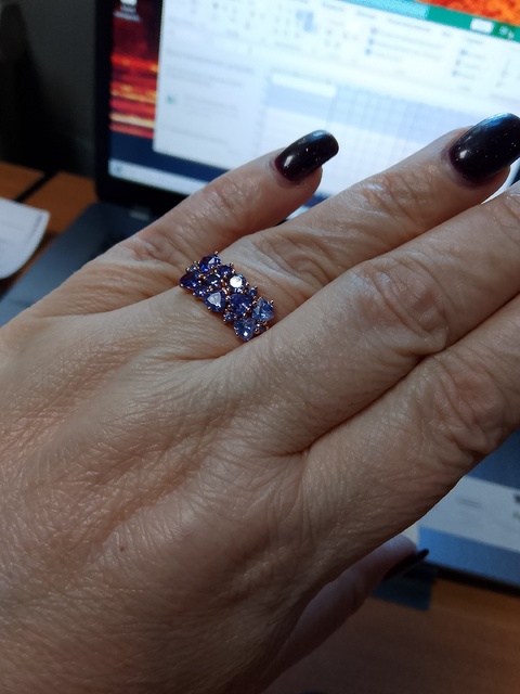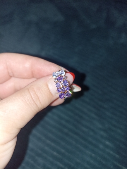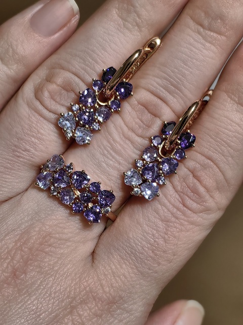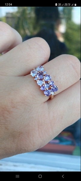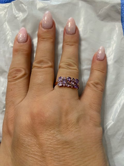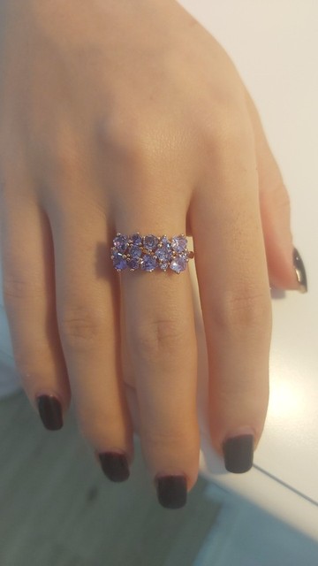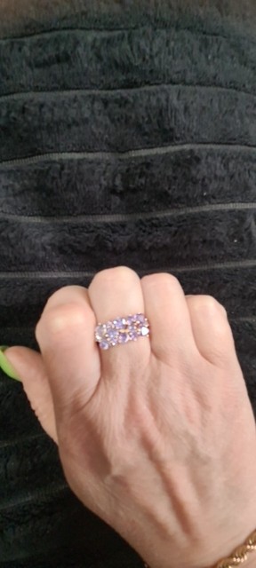 Incredible beauty ring! In the color of stones, it has a gradient: from light purple to dark. Glitters very brightly like diamonds (probably)☺. Very satisfied with the purchase. The size corresponds. For 20 Russian fit 10. assembled a set together with earrings and a pendant. Now one of your favorite sets!