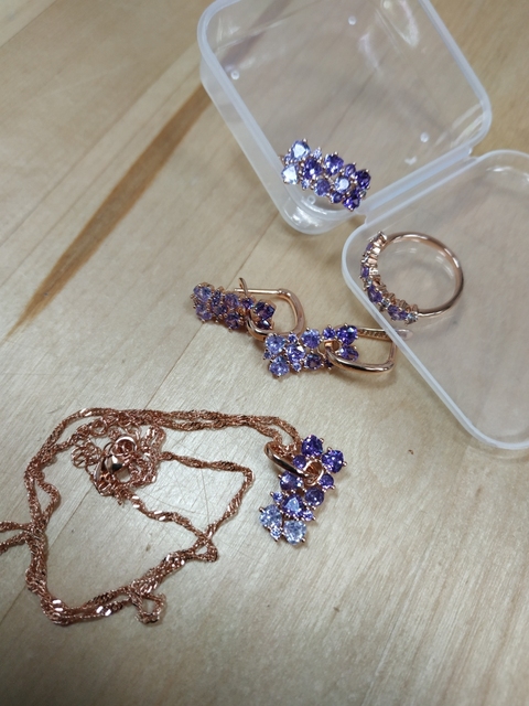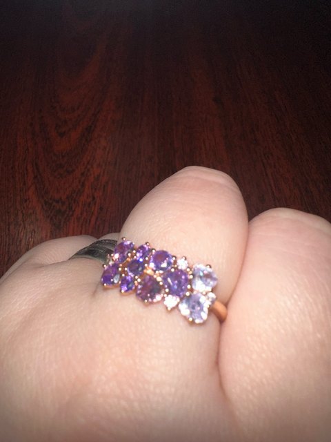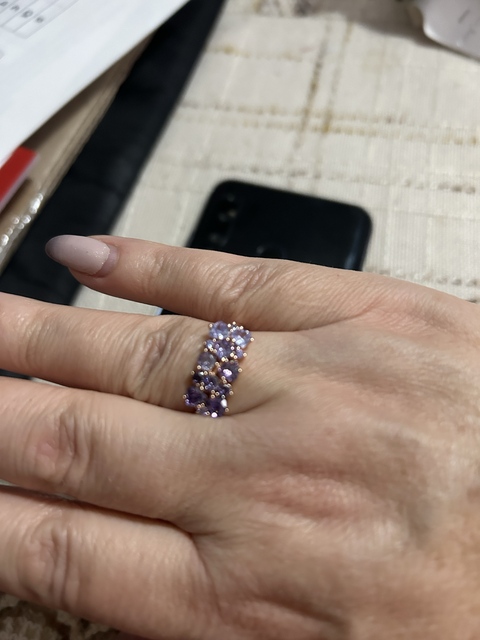 Невероятной красоты кольцо! В цвете камней оно имеет градиент: от светло-фиолетового к тёмному. Блестит очень ярко, как бриллианты (наверное) ☺. Очень довольна покупкой. Размер соответствует. На 20 российский подошёл 10. Собрала комплектом вместе с серёжками и кулоном. Теперь один из любимых сетов!