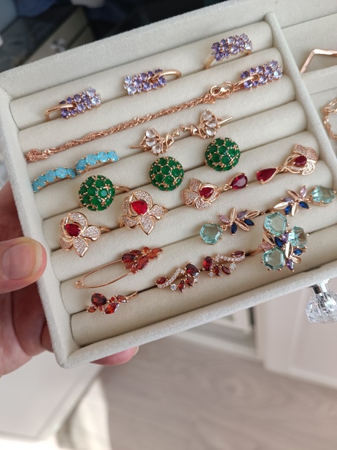 Luxurious ring, I took it with a set. Made exquisitely. The stones sparkle, different in shape and color. Fine