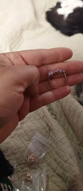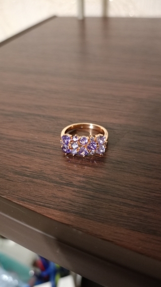 с одной стороны кольца камушки почти белые не сиреневые, очень жаль что камни не одного цвета,а так очень красивое кольцо,быстрая доставка спасибо
