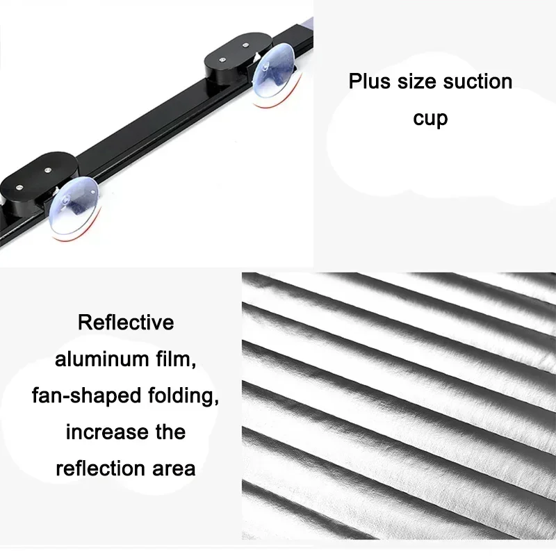 *2. Easy setup with suction cups(Standard or Upgrade suction), Install it on one side of windshield, then unfold the sunshade to cover the whole windshield.