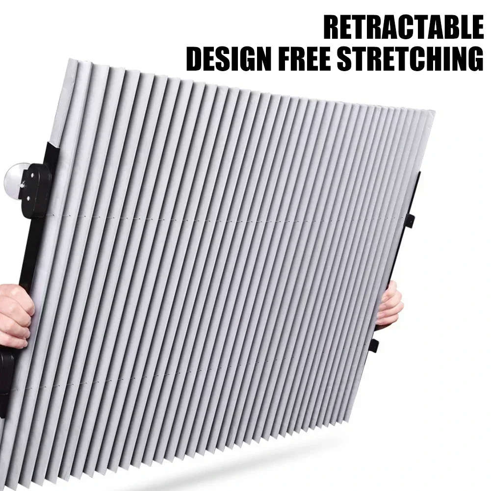 *1. Use it when parking, No more waiting. Made of encrypted polyester fabric, covered with aluminum film, the corrugated sunshade has excellent heat insulation effect to keep the carriage cool in the hot summer.