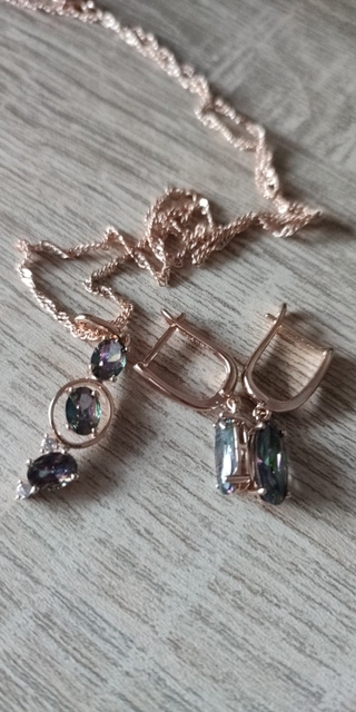 Очень красивый и качественный товар.Красивые серьги и цепочка с кулоном .Я рекомендую продавца.