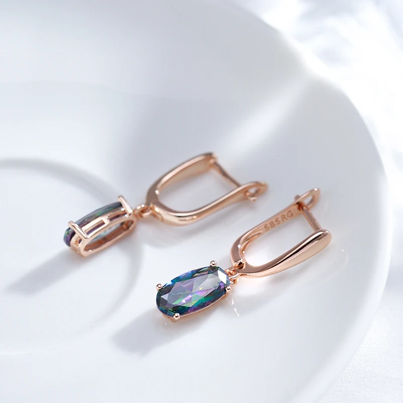 Kienl Simple Colorful Natural Zircon Drop Earring for Women Luxury 585 Rose Gold Color Long Earring High Quality Daily Jewelry