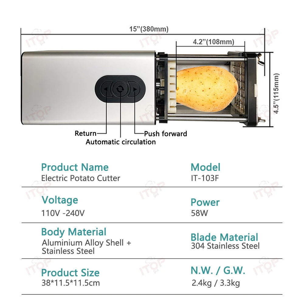 Electric Potato Cutter Potato Chip Cutter Vegetable Cutting Machine Strip Dice Cube Slice Stainless Steel Processor 110V-240V