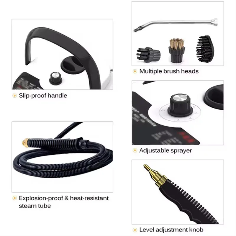 3.Lengthen the power cord and steam hose, single person operation is not laborious, can meet the cleaning needs.