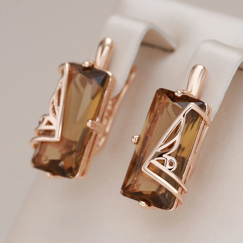 Kinel Fashion Light Brown Natural Zircon English Earrings for Women Simple Square 585 Rose Gold Color High Quality Daily Jewelry