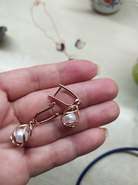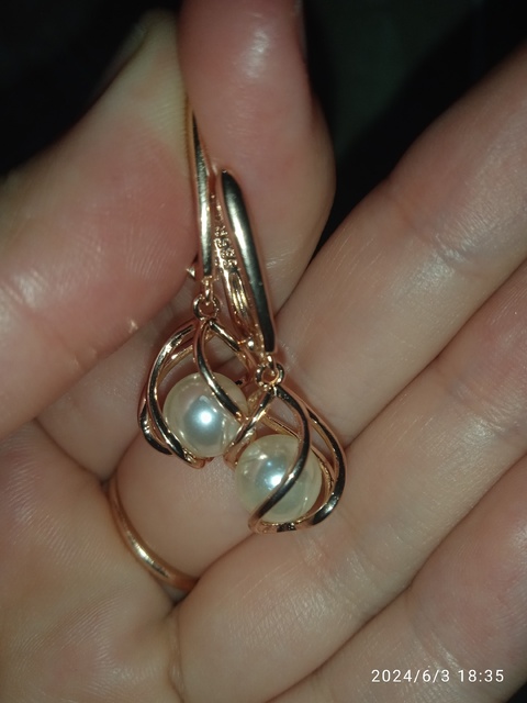 The earrings are beautiful, but you have to write that the pearl is plastic. when wearing, they rattle like rattles.