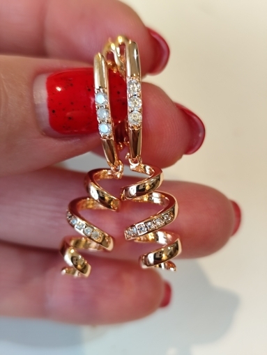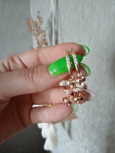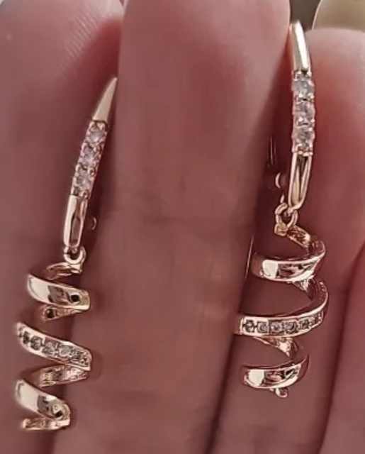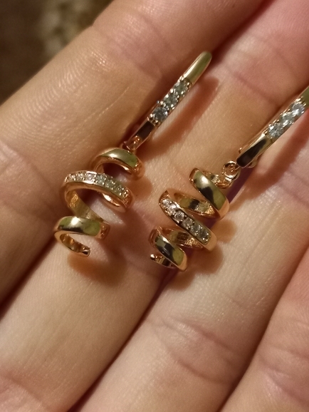 The earrings are very stylish! look gentle and beautiful, you cannot distinguish from gold. I can give advice as I make jewelry sets. so that the crystals on the earrings do not fall out, you need to cover them with colorless nail polish.