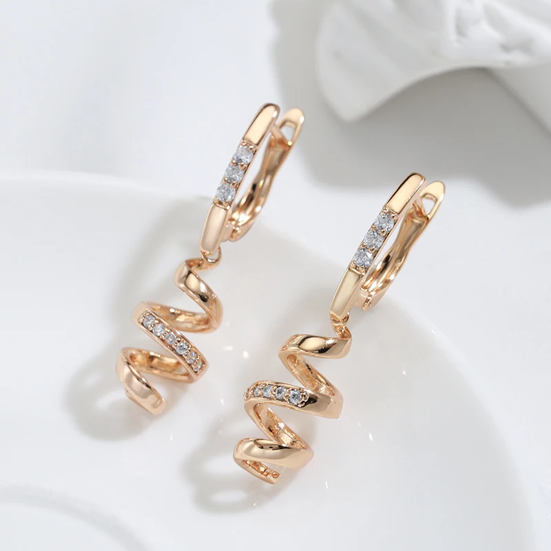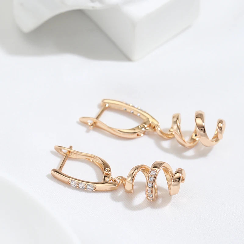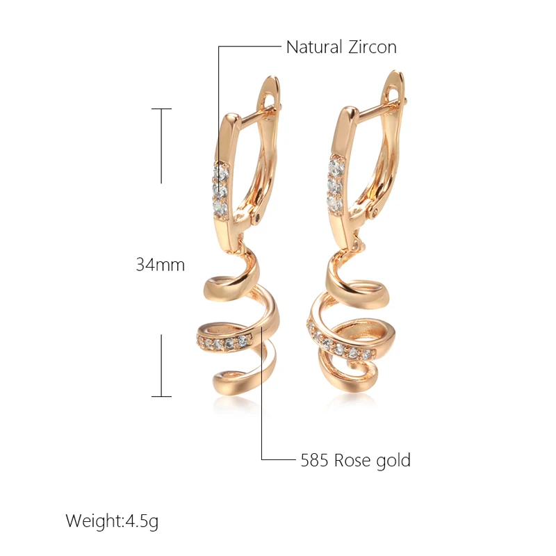 Kinel New 585 Rose Gold Drop Earrings for Women Natural Zircon Bridal Wedding Geometry Rotate Earrings Fashion Daily Jewelry