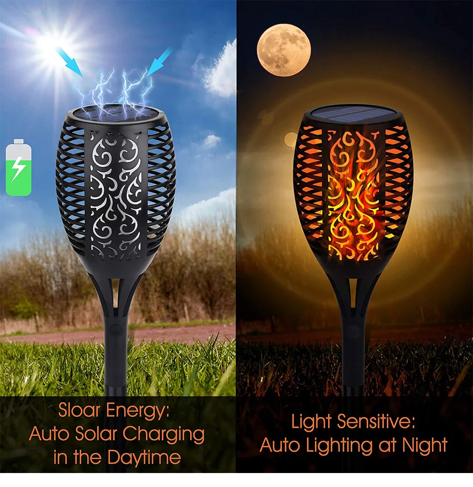 2. EASY TO INSTALL – Solar torch lights are wireless so you can install them in yards, aisles, swimming pools, gardens, terraces, fences, decks or outdoor activities such as parties, camping, barbecue, weddings, Thanksgiving, Christmas.