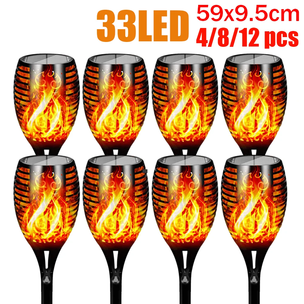 59CM/23Inch 33 LED Solar Lamp Flame Light Outdoor Waterproof Garden Torch Lights Flickering Lanterns For Yard Street Patio Decor