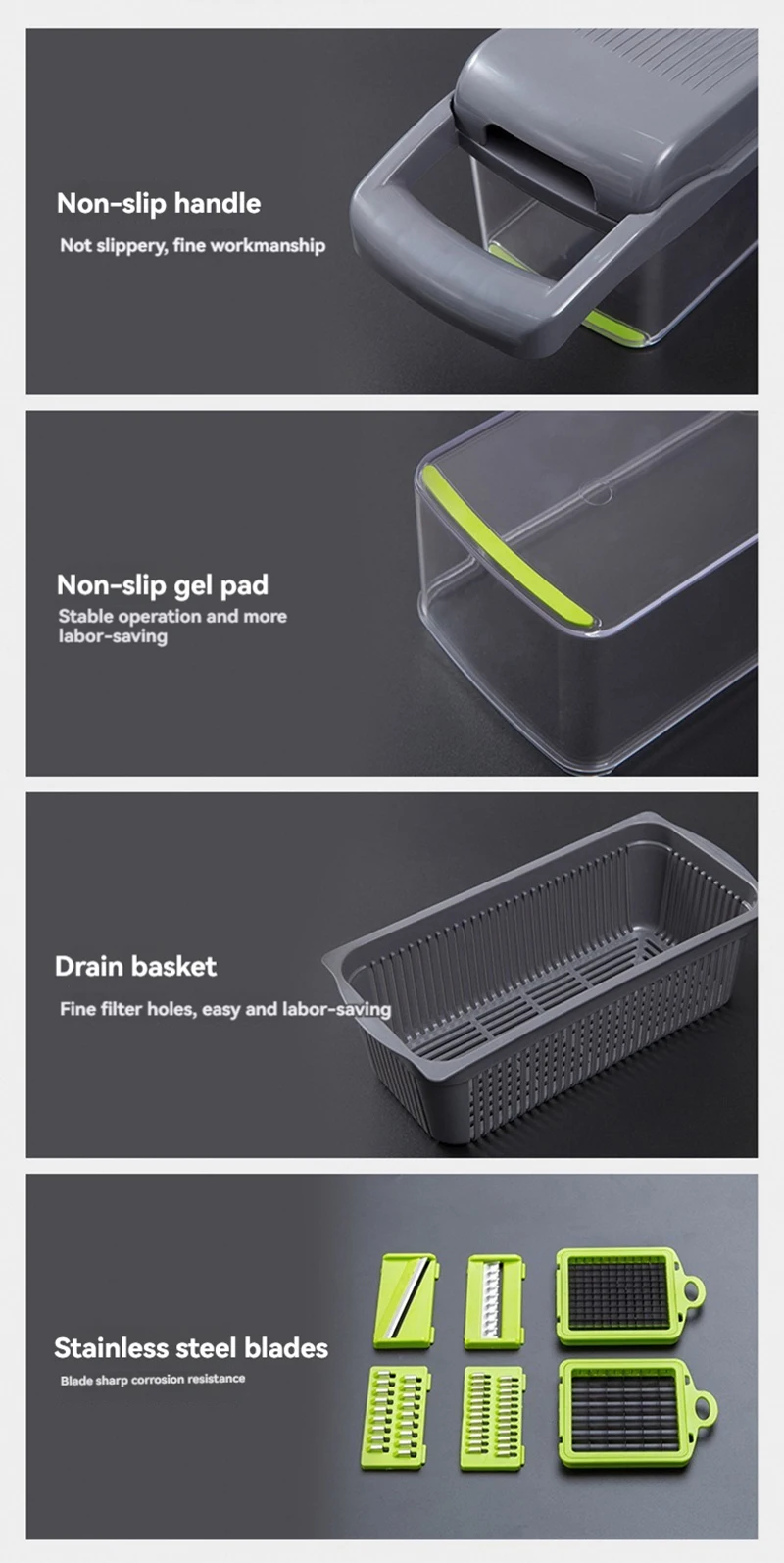 Features: easy to clean, convenient to store all parts of onion cutter.