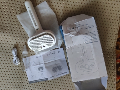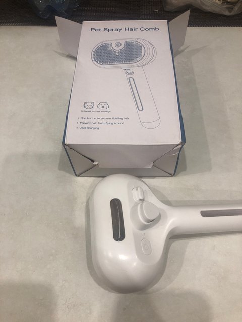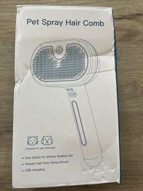 Pet sprays grooming comb Remove floating hair fluffs hair water steam styling for dogs. Just received it. I have yet to try this out.