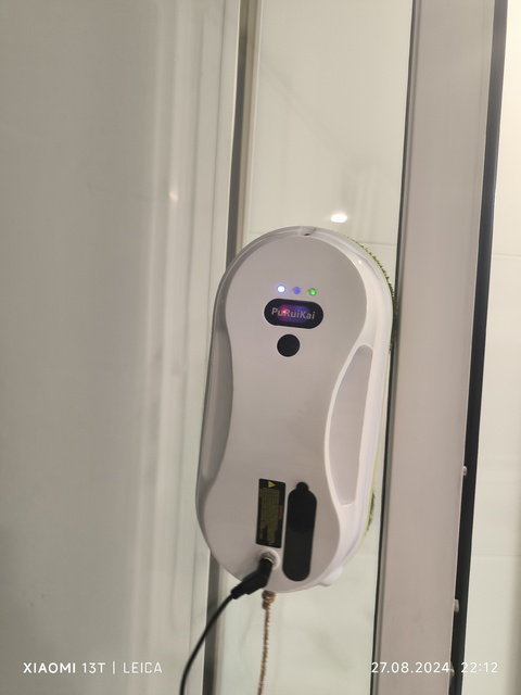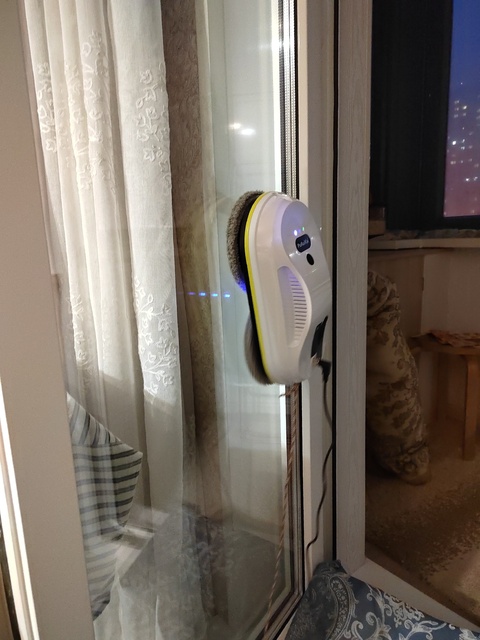 читал отзывы, их много и положительные. все же заказал и не пожалел. стекол очень много, взял допом тряпки. сначала сухими прошелся робот. держится на стекле от сети, не оторвать. после залили жидкость в него. мыл поздно вечером. ничего не видно было. днем почмотрел результаты, отлично помыл.не пожалел что купил.