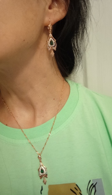 The delivery is super fast! No more than two weeks. Earrings and pendant are incomparable! Design, execution and red gold color, everything is great! I think I’ll wear it for a long time. Especially since this set is more elegant than casual.