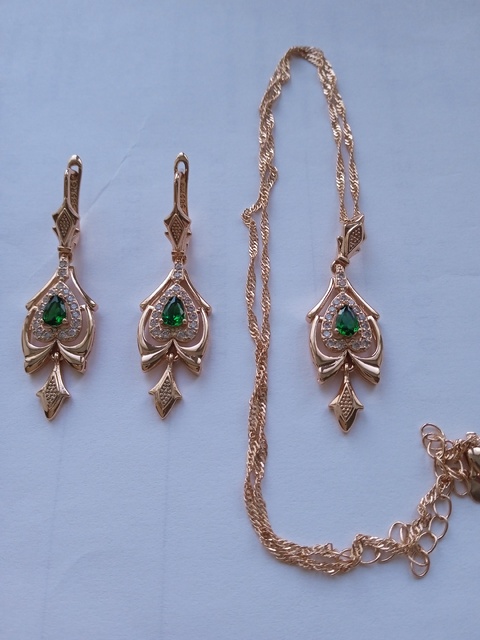доставка супер быстрая! не больше двух недель. серьги и подвеска бесподобны! дизайн, исполнение и цвет красного золота, всё отлично! думаю буду долго носить. тем более, что этот комплект больше нарядный чем повседневный.