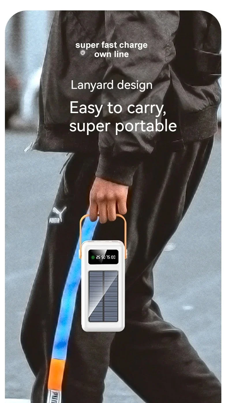 *The Solar chatger power bank is made of environmentally friendly silicone, high-strength ABS and PC materials, with a protective cover attached to the outside of the charging/discharging port, which is waterproof, dust-proof, and drop-proof, very durable. It can still work normally in various harsh environments. It also comes with a carabiner that you can attach to your backpack while hiking and charge this power bank with solar energy.