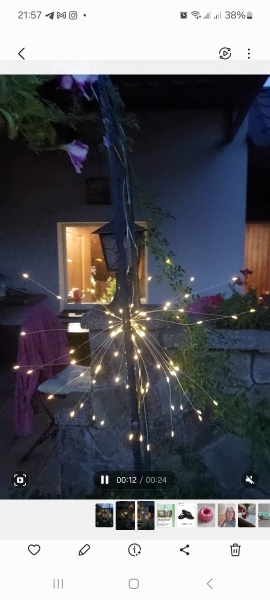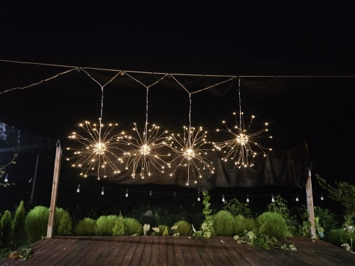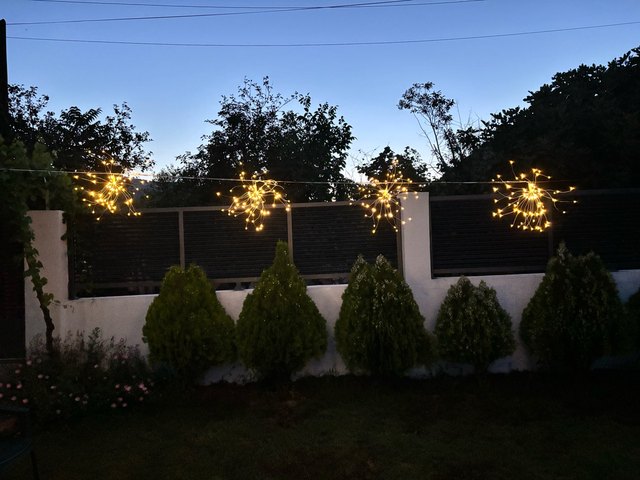 Piękne:). Rozwieszone na szybko, żeby sprawdzić czy działają, docelowo będą nad stołem w altanie. Śliczne. Długo świecą i można je ładnie uformować w kule. Wszystko działa jak trzeba. Polecam:)