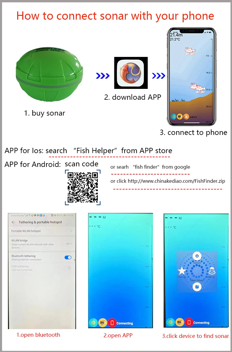 2. Open the BT inside the “setting” of your phone. Click “Fish Helper” App and enter the main interface