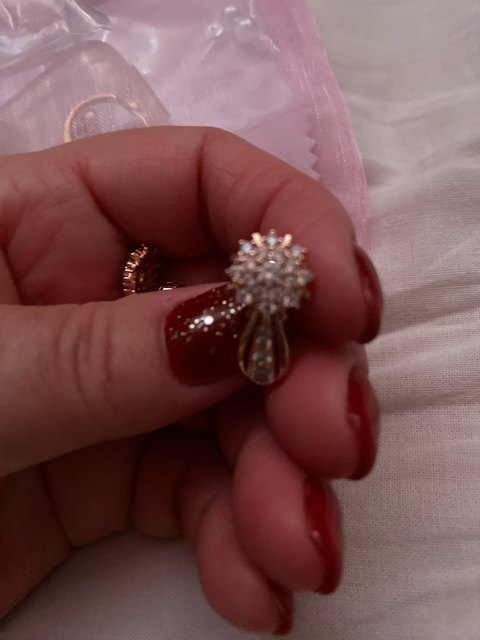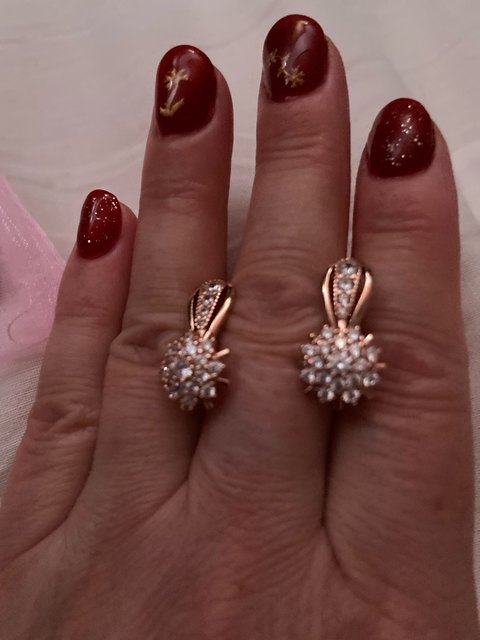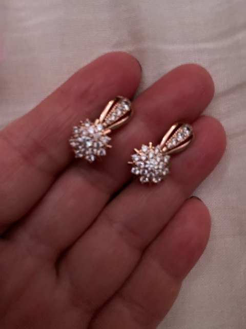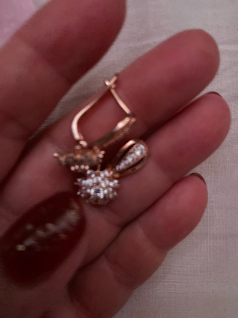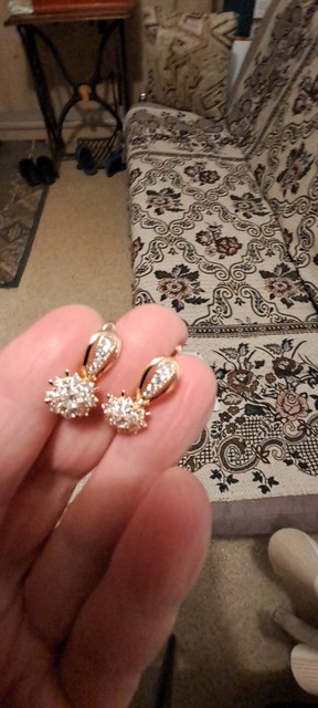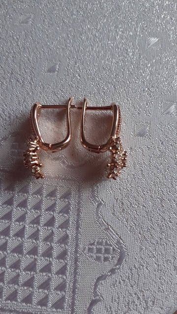 Well, very beautiful earrings, in the color of gold, the quality is decent, I do not mind the money spent. Lungs, pebbles sparkle, locks super. The order arrived ahead of schedule, packed in a plastic box, thank you all very much. Order, will not regret it.